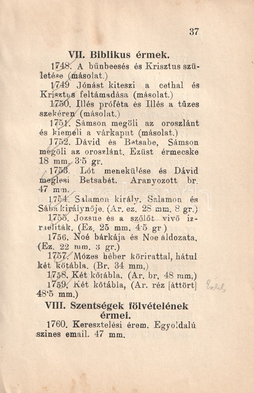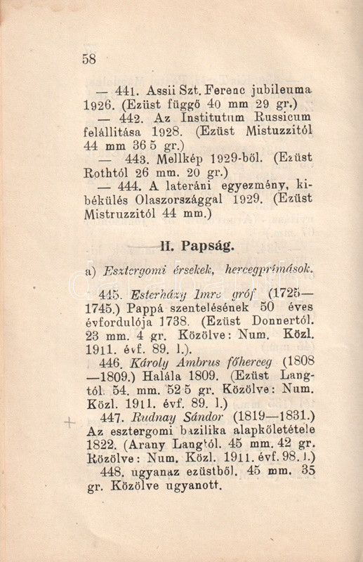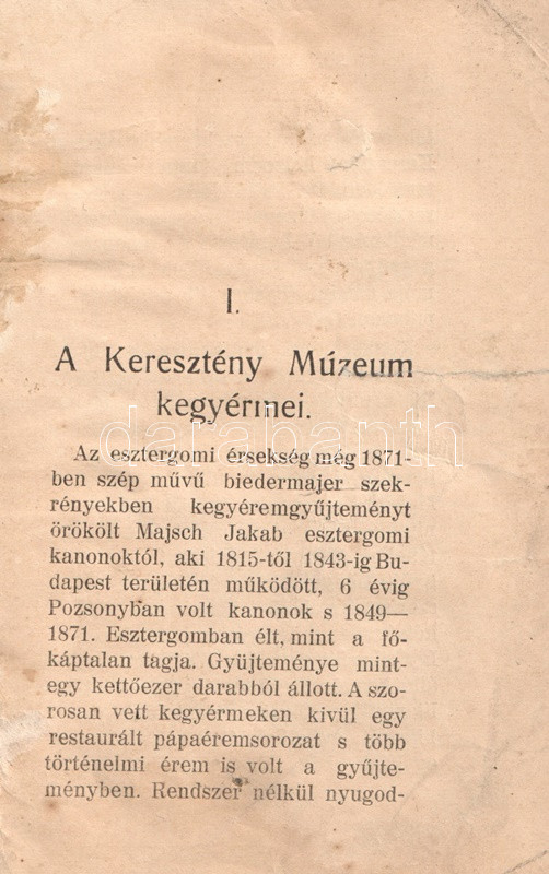 Az esztergomi Keresztény Múzeum kegyérmei és történeti érmei. Közli: Lepold Antal.