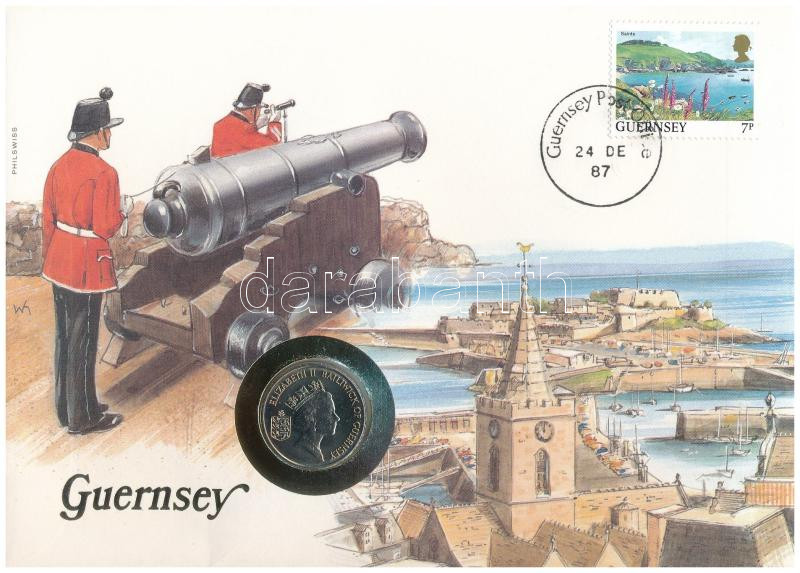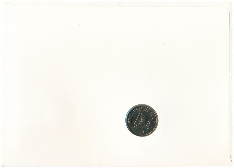 Guernsey 1987. 5p Cu-Ni felbélyegzett borítékban, bélyegzéssel, német nyelvű leírással T:UNC