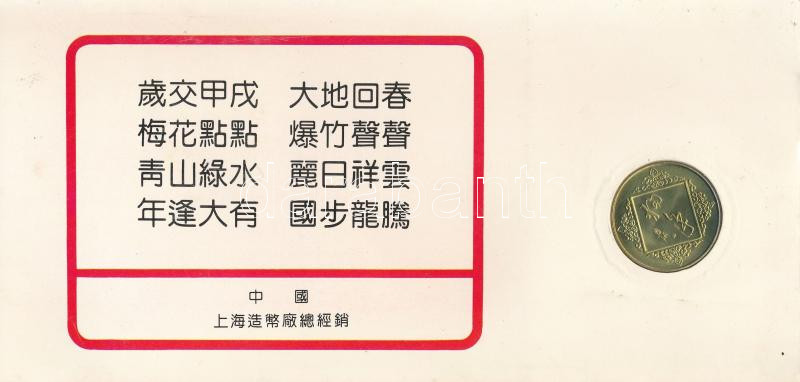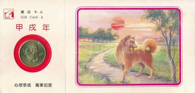 China 1994. "Year of the Dog" cardboard gift card with a brass token (30mm) C:UNC, foil error
