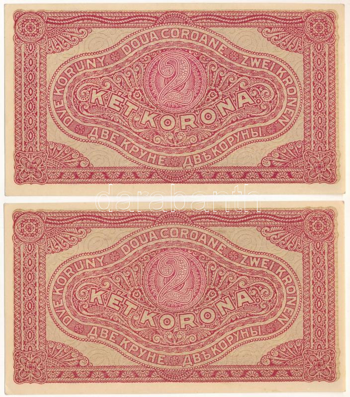 Beschreibung: 1920. 2K csillagos sorszámmal (2x) sorszámkövetők "2ab029 * 758237 - 2ab029 * 758238" T:AU