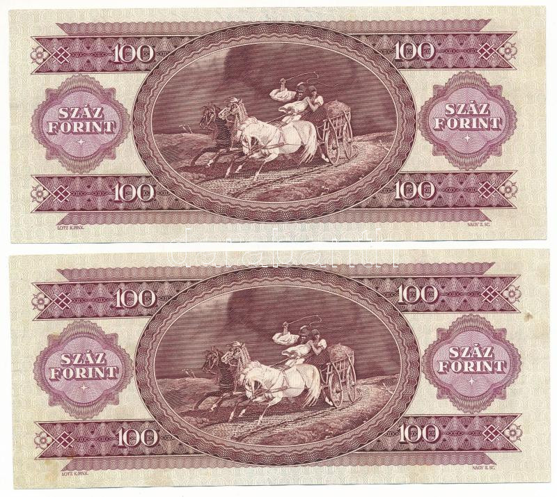 1992. 100Ft (2x) sorszámkövetők "B 365 050938 - B 365 050939"... https://www.darabanth.com/de/504-Fernauktion/504.0/Numismatik/Ungarische-Banknoten~4500054/1992-100Ft-2x-sorszamkovetok-B-365-050938-B-365-050939-TF-szep-papir-tulyuk-egyiken~II3423468