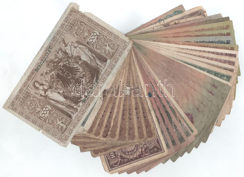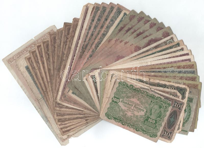 Beschreibung: 38db-os vegyes, főleg magyar bankjegyből álló tétel, benne Pengők és Koronák T:F-G