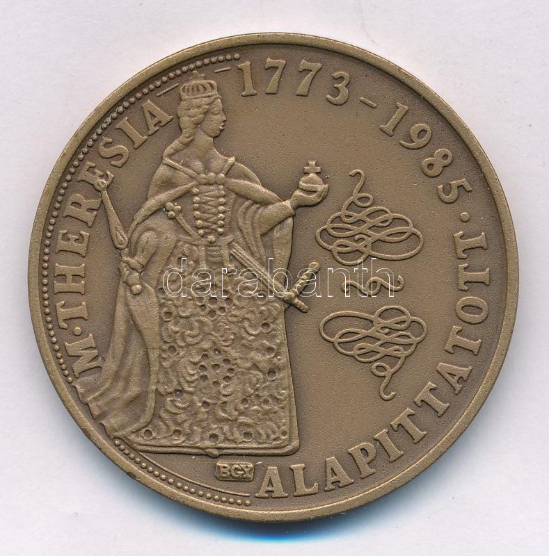 Bognár György (1944-) 1985. "M. Theresia alapíttatott 1773-1985 / Bizományi Áruház Vállalat - BÁV - 40 év - 1945-1985" kétoldalas bronz emlékérem (42,5mm) T:AU