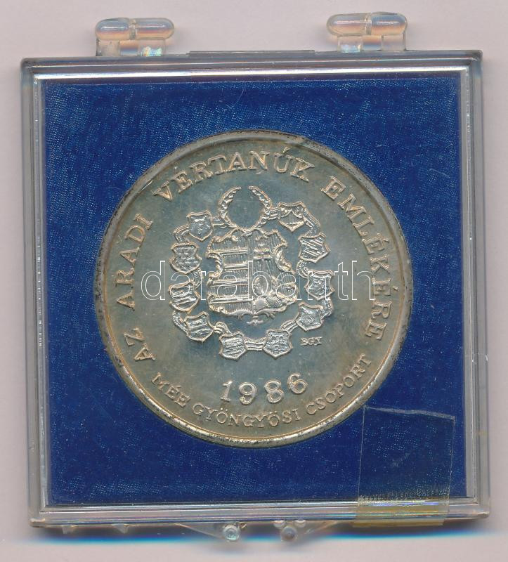 Bognár György (1944-) 1986. "MÉE Gyöngyösi Csoport - Aradi Vértanúk / Damjanich János" kétoldalas, jelzett Ag emlékérem műanyag tokban, plomba nélkül (34,50g/0.640/42,5 mm) T:UNC, patina