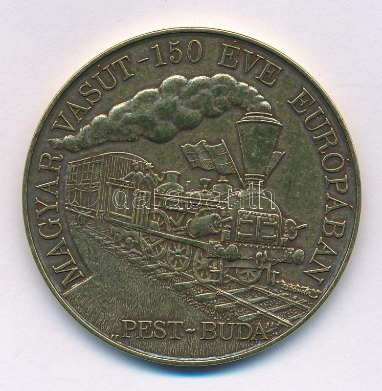 Bognár György (1944-) 1996. "Magyar Vasút - 150 Éve Európában, Pest-Buda" kétoldalas bronz emlékérem sérült kapszulában (42,5mm) T:AU
