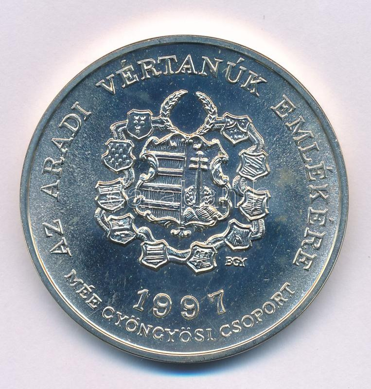 Bognár György (1944-) 1997. "MÉE Gyöngyösi Csoport - Aradi Vértanúk / gr. Vécsey Károly" kétoldalas, jelzett Ag emlékérem kapszulában (34,50g/0.640/42,5 mm) T:AU