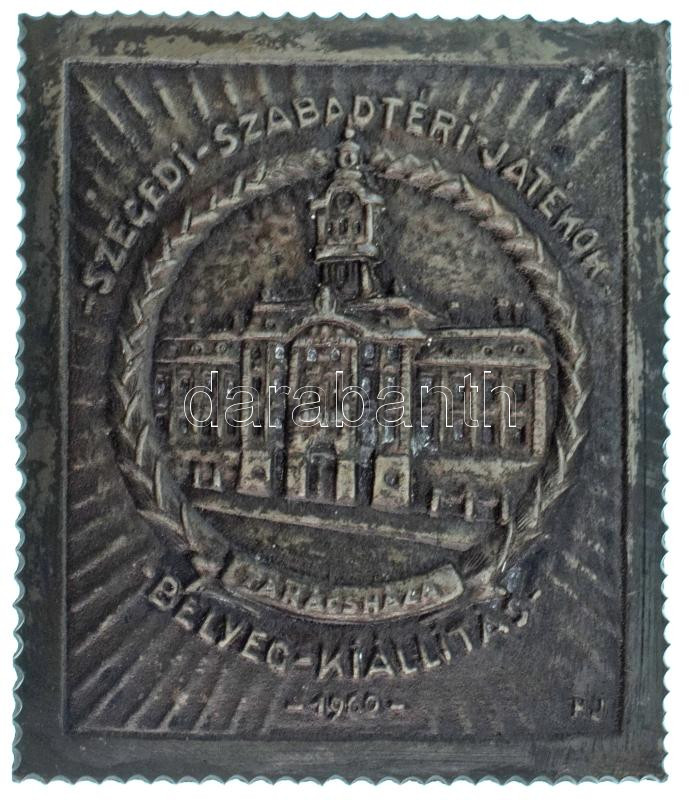 Beschreibung: Horváth János (1940-) 1960. "Szegedi-Szabadtéri-Játékok - Tanácsháza - Bélyeg-Kiállítás " egyoldalas fém emlékplakett (~70x80mm) T:AU