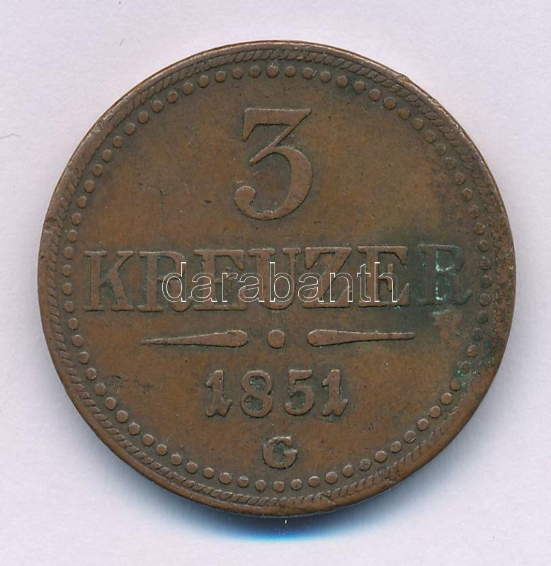 Adamo M6 https://www.darabanth.com/de/504-Fernauktion/504.0/Numismatik/Ungarische-Munzen-und-Munzen-mit-ungarischem-Munzzeichen~4500055/1851G-3kr-Cu-TVF-patina3Cbr-3E-Adamo-M6~II3424794