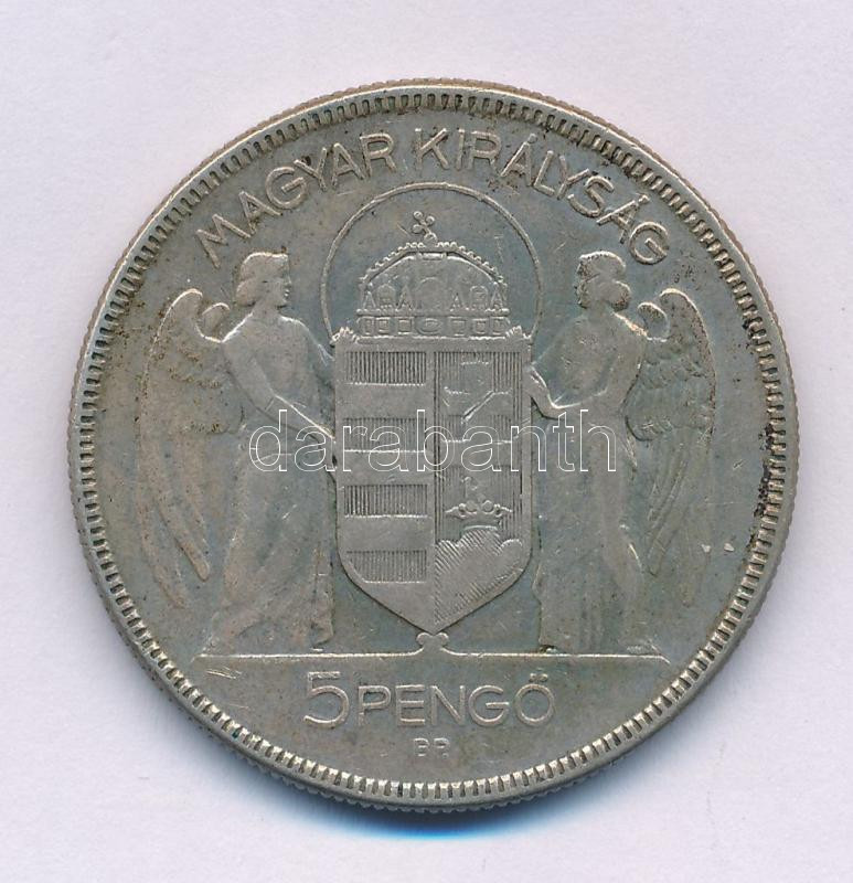 Beschreibung: 1930. 5P Ag "Horthy jobbra " T:F patina