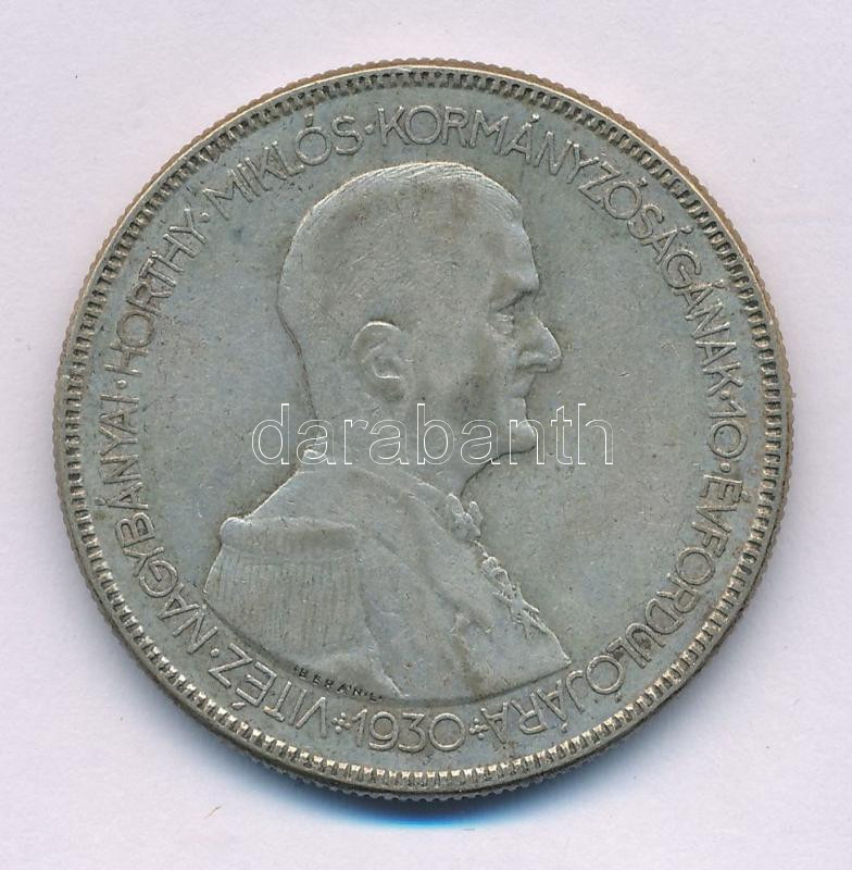 1930. 5P Ag "Horthy jobbra" T:F, patina