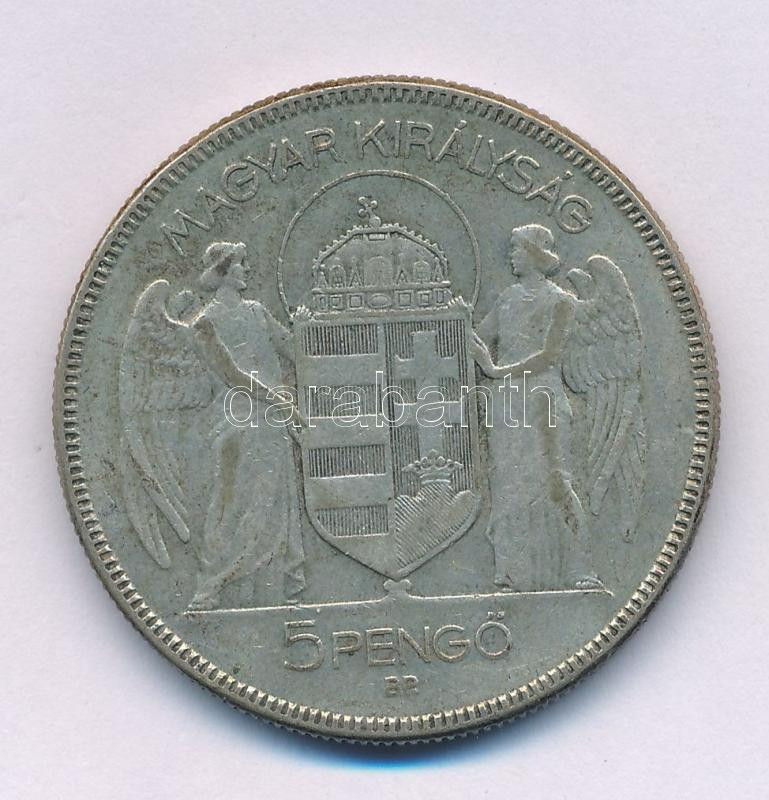 Beschreibung: 1930. 5P Ag "Horthy jobbra " T:F, patina
