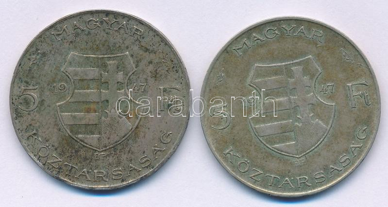 Beschreibung: 1947. 5Ft Ag "Kossuth" (2x) T:VF,F patina