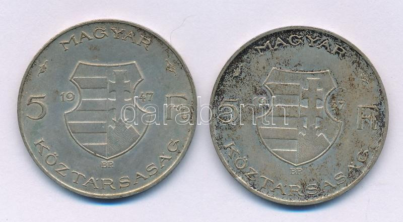Beschreibung: 1947. 5Ft Ag "Kossuth" (2x) T:XF,VF patina