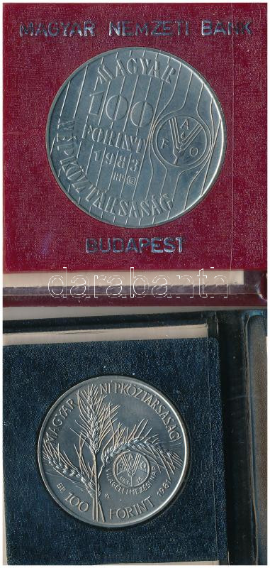 Beschreibung: 1981. 100Ft Ni "FAO I. - Világélelmezési nap " műbőr tokban, tanúsítvánnyal + 1983. 100Ft Cu-Ni "FAO - Több gabonát a világnak " műbőr tokban, tanúsítvánnyal T:BU