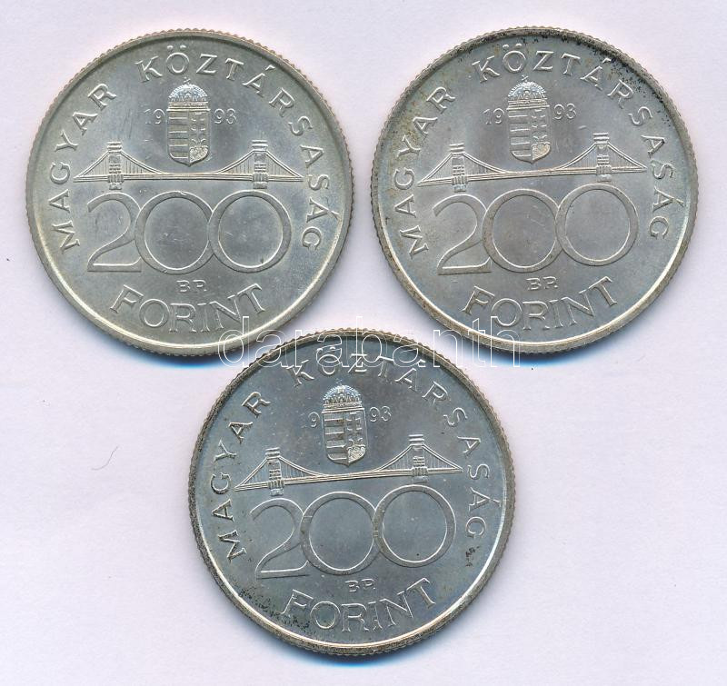 Beschreibung: 1993. 200Ft Ag "MNB" (3x) T:AU,XF patina