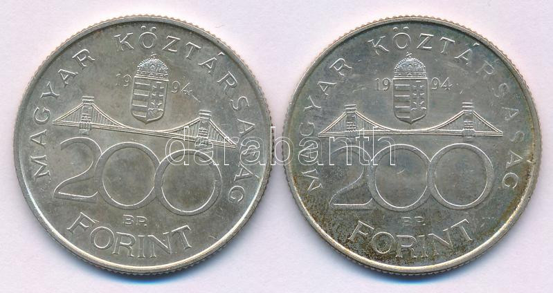 1994. 200Ft Ag "Deák" (2x) T:AU,XF patina