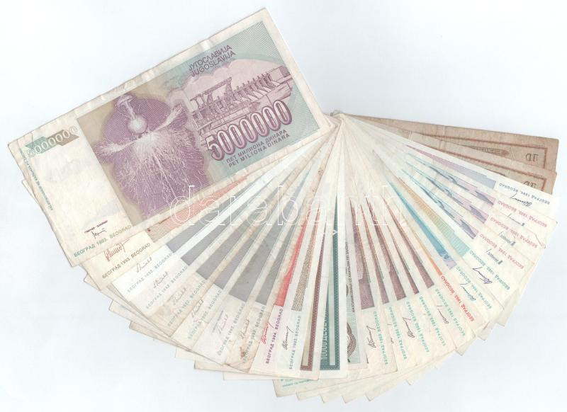 Beschreibung: Jugoszlávia 1968. 10D (2x) + 1992-1994. 100D-50.000.000.000D (22db, 11xklf) + Horvátország / Krajna Szerb Köztársaság / Knin 1992-1993. 10.000D-500.000D (3xklf) T:AU-VG
