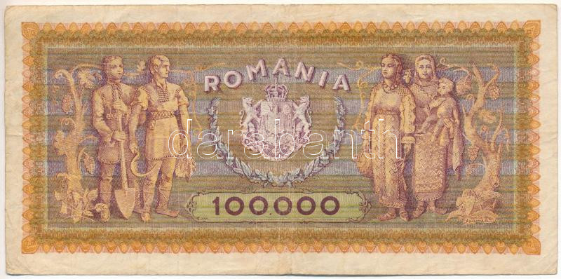 Beschreibung: Románia 1947. 100.000L "N.0229 0914" T:F,VG
