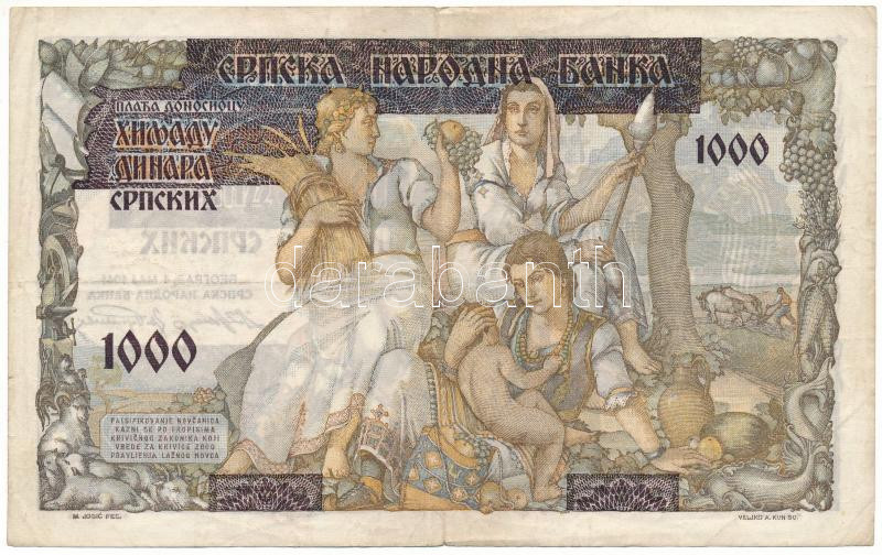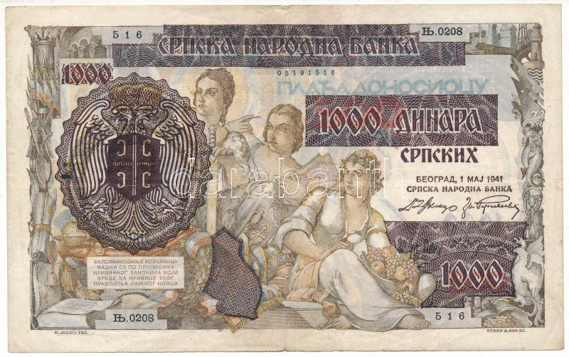 Szerbia / Német megszállás 1941. 1000D felülbélyegzett ideiglenes kiadás "Nj.0208 516" T:F