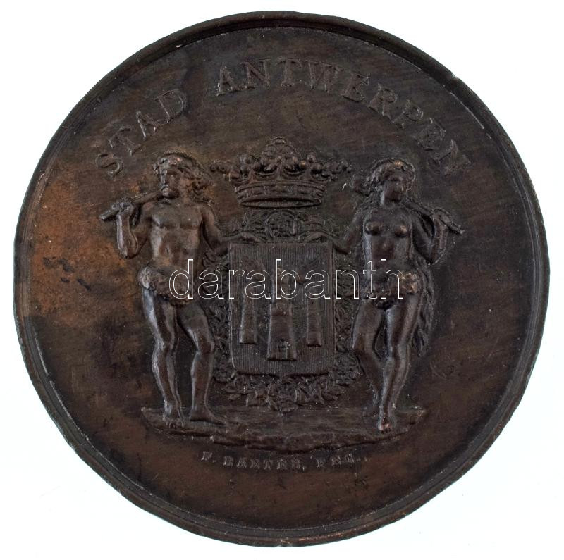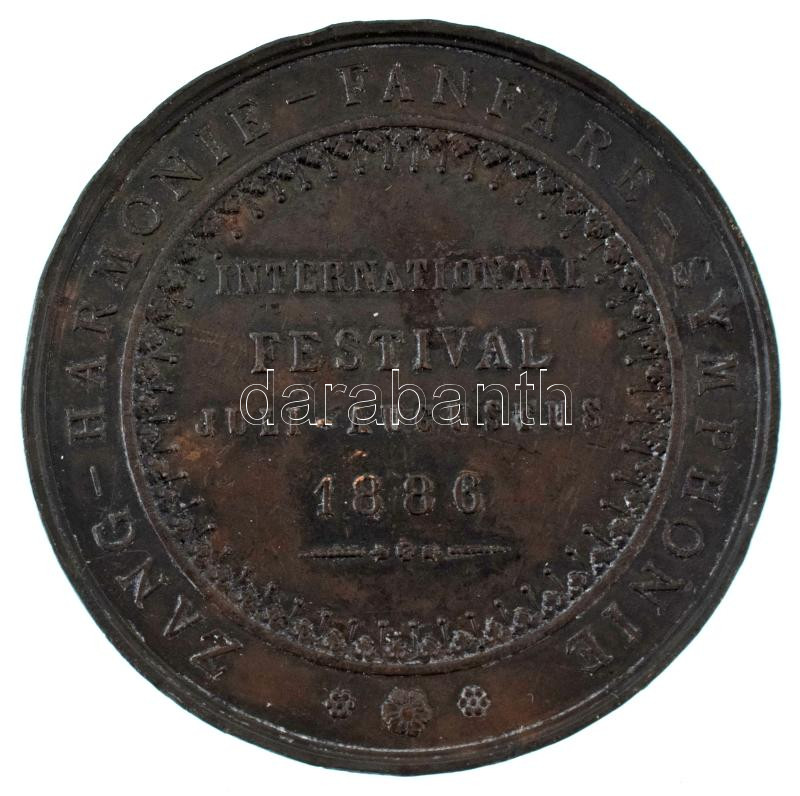Belgium 1886. "Zang-Harmonie-Fanfare-Symphonie - International Festival Juli-Augustus 1886 / Stad Antwerpen (Ének-Harmónia-Fanfár-Szimfónia - Nemzetközi Fesztivál 1886. július-augusztus / Antwerpen városa)" bronz emlékérem (66mm) T:XF több ph., patina
