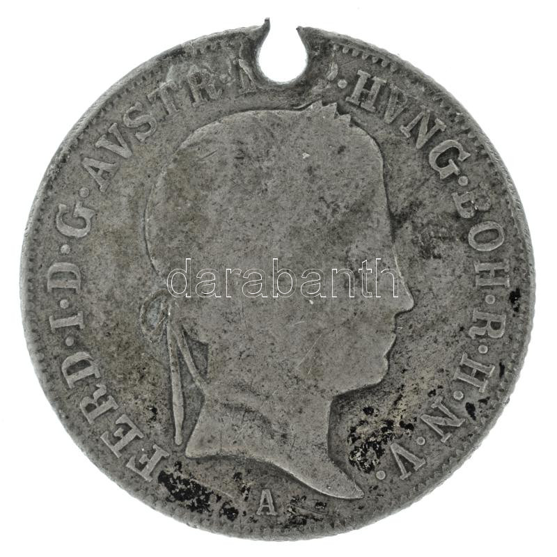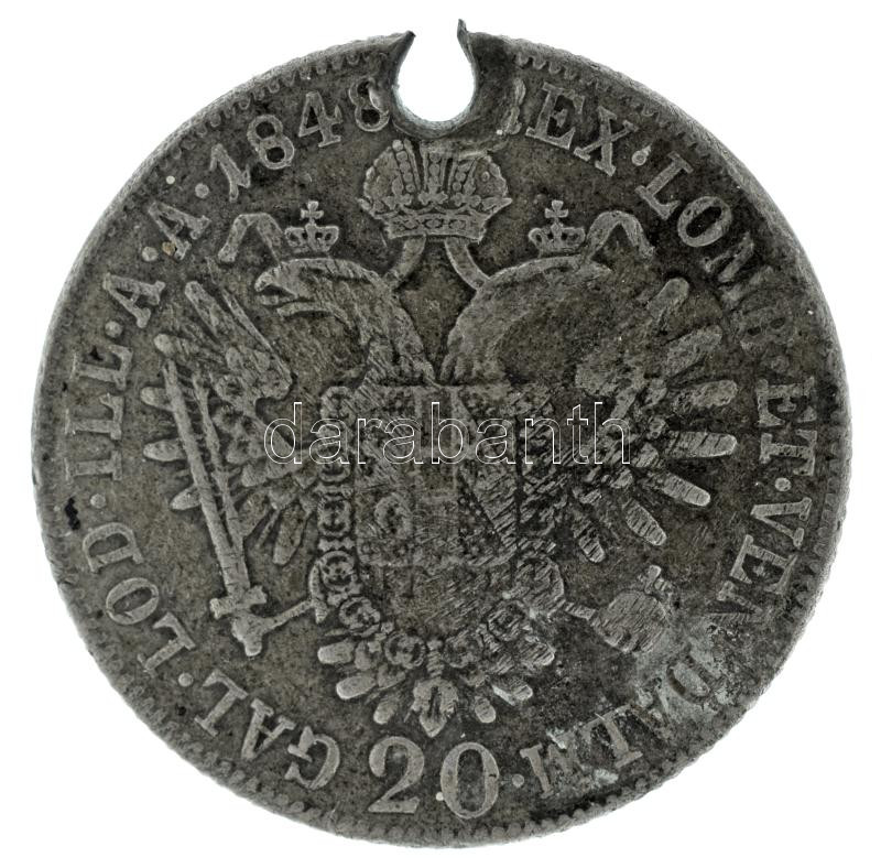 Austria 1848A 20 Kreuzer Ag "Ferdinand I" C:VF patina, hole