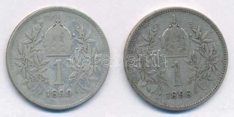 Beschreibung: Ausztria 1898-1899. 1K Ag "Ferenc József" (2xklf) T:F patina
