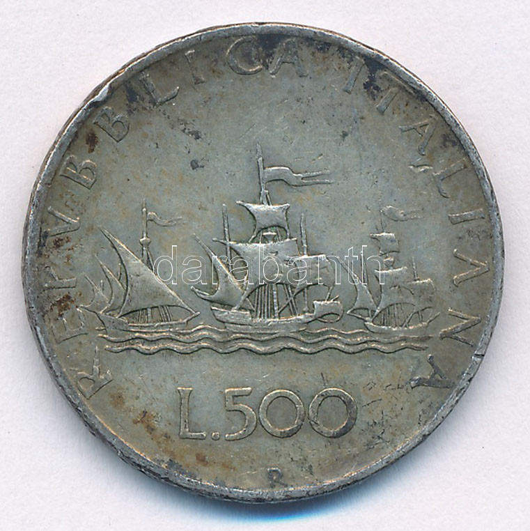 Olaszország 1959R 500L Ag "Kolumbusz hajói" T:2- patina Ital... https://www.darabanth.com/de/504-Fernauktion/504.0/Numismatik/Weltweit-Munzen~4500062/Olaszorszag-1959R-500L-Ag-Kolumbusz-hajoi-T2-patina-Italy-1959R-500-Lire-Ag-Columbus-Ships-~II2693771