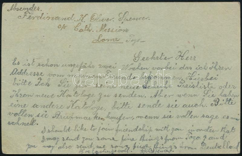 Brit-francia megszállás 1921 Díjjegyes levelezőlap késői felhasználása... https://www.darabanth.com/de/504-Fernauktion/504.0/Philatelie-und-Postgeschichte-Ausland/Togo~3000254/Brit-francia-megszallas-1921-Dijjegyes-levelezolap-kesoi-felhasznalasa-nemet-katolikus-mis~II3422202