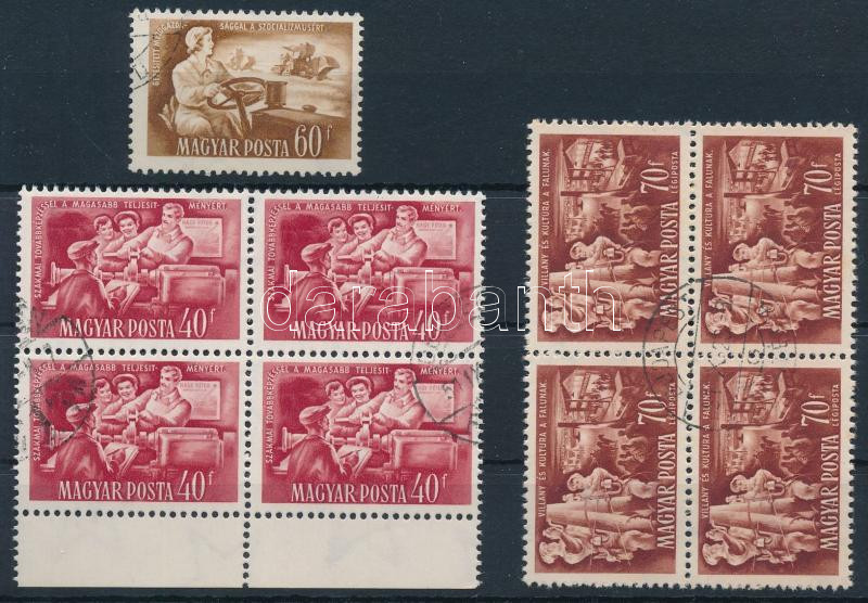 Beschreibung: 1951 Az ötéves terv eredményei 3 db bélyeg számvízjellel