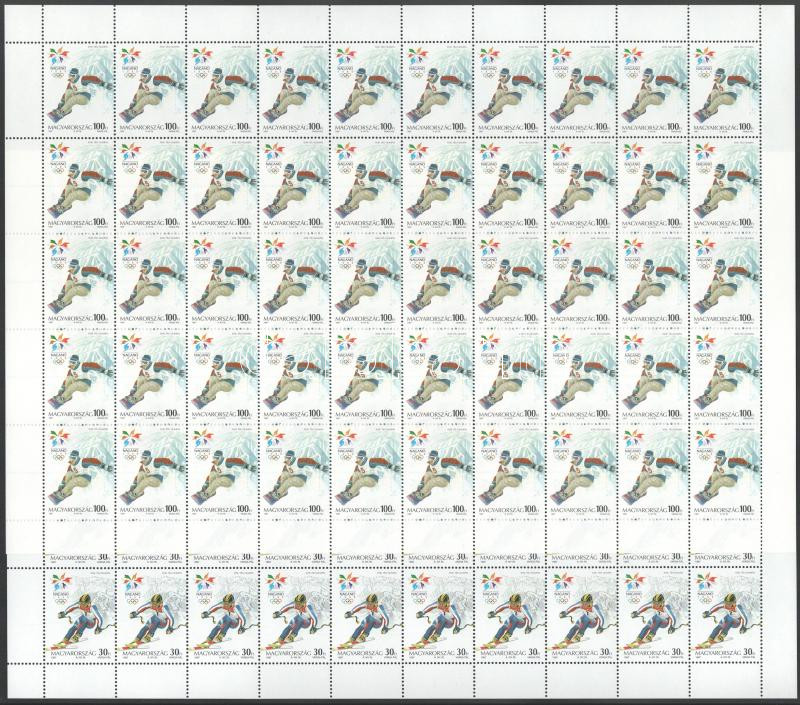1998 Téli olimpia (XI.) Nagano sor teljes hajtatlan 50-es ívekben https://www.darabanth.com/de/504-Fernauktion/504.0/Philatelie-und-Postgeschichte-Ungarn/Ausgaben-1990-1999~500058/1998-Teli-olimpia-XI-Nagano-sor-teljes-hajtatlan-50-es-ivekben~II3423340