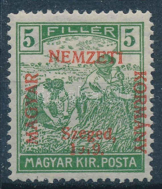 Beschreibung: 1919 Arató 5f hiányos felülnyomással. Signed: Bodor