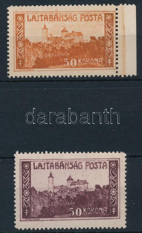 Beschreibung: Nyugat-Magyarország VII. 1921 50K eltérő narancssárga színben, papírránccal + támpéldány, mindkettő Bodor vizsgálójellel