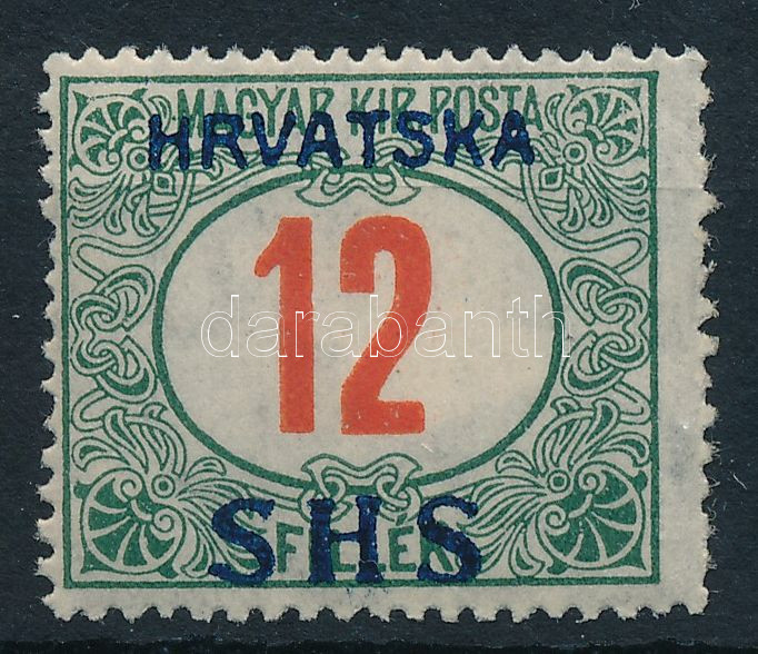 SHS 1918 Pirosszámú Portó 12f (** 30.000) Bodor vizsgálójellel https://www.darabanth.com/de/504-Fernauktion/504.0/Philatelie-und-Postgeschichte-Ungarn/Besetzung-und-Lokalausgabe-1919-1921-mit-Obligo~500045/SHS-1918-Pirosszamu-Porto-12f-30000-Bodor-vizsgalojellel~II3425084