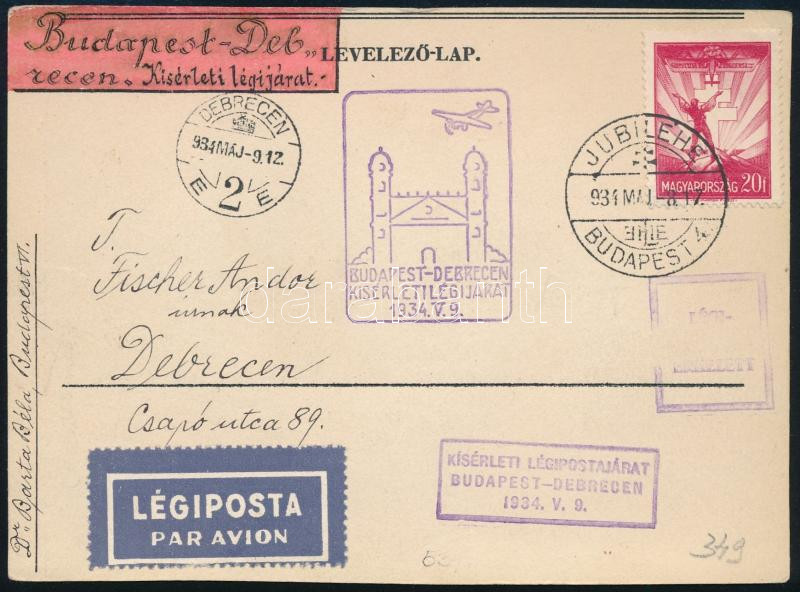 1934 Légi levelezőlap "BUDAPEST-DEBRECEN KÍSÉRLETI LÉGIJÁRAT"... https://www.darabanth.com/de/504-Fernauktion/504.0/Philatelie-und-Postgeschichte-Ungarn/Pengo-Periode-1926-1944~500048/1934-Legi-levelezolap-BUDAPEST-DEBRECEN-KISERLETI-LEGIJARAT~II3258365