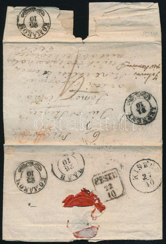 Beschreibung: ~1845 Portós levél Szilasról "LEPSÉNY" - "PESTH" - 2 x "KOMÁROM" - "RAAB" - "KISBÉR"