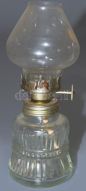 Beschreibung: Asztali petróleumlámpa, cilinderrel, m: 15 cm