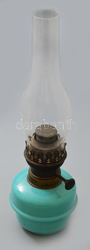 Beschreibung: cca 1900 Brenner Austria Petróleumlámpa, opálüveg tartállyal, lapított cilinderrel, m: 40 cm