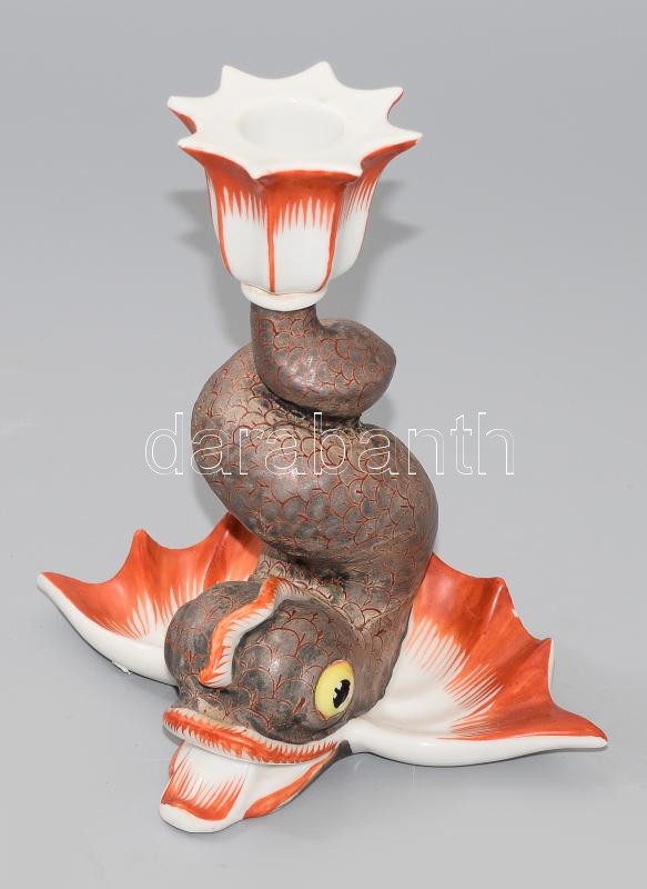 Beschreibung: Herendi kínai hal gyertyatartó, jelzett, ragasztott, m: 14 cm