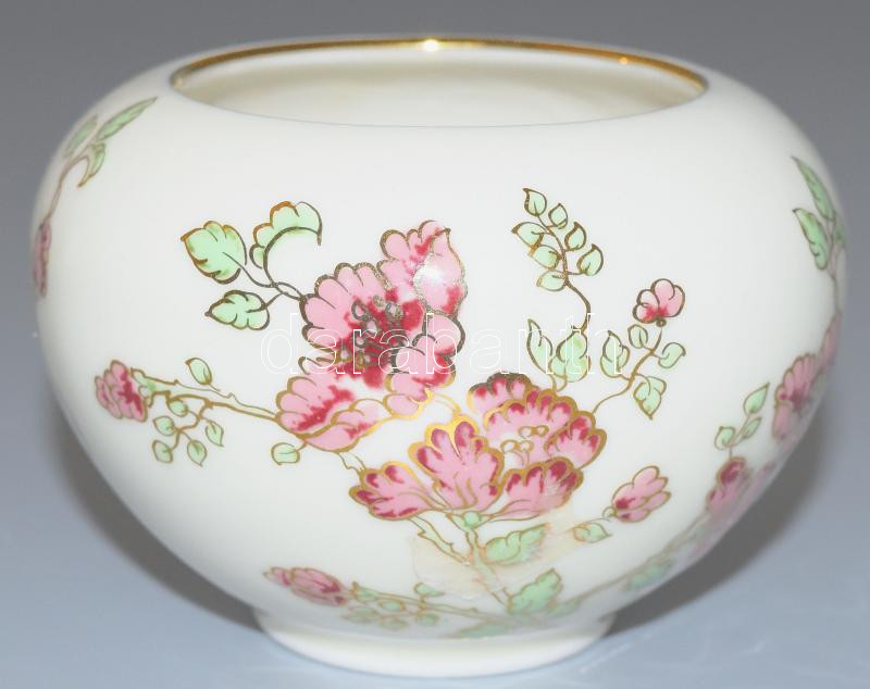 Beschreibung: Zsolnay aranykontúrozott virágmintás kisváza, jelzett, hibátlan, d: 8,5 cm, m: 6,5 cm