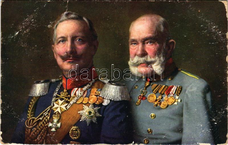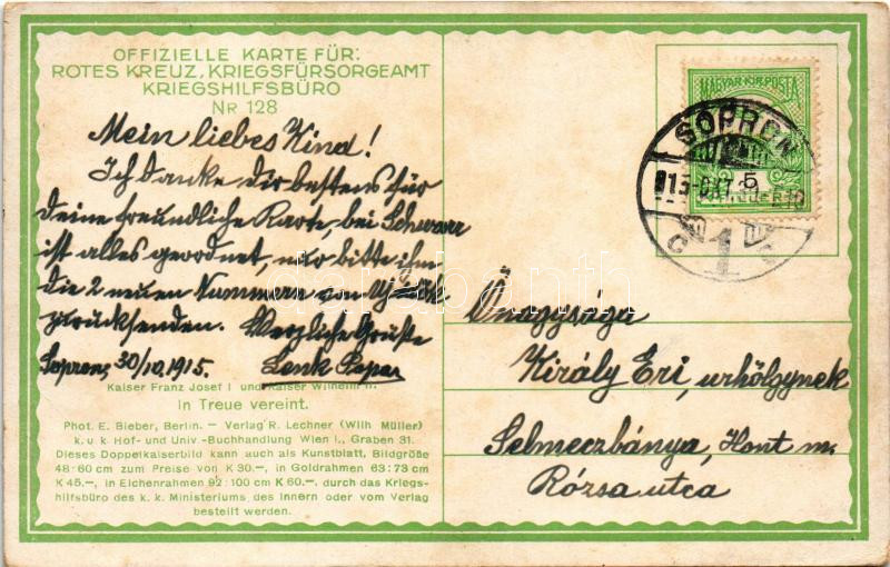 1915 Ferenc József és II. Vilmos / Franz Joseph and Wilhelm II. Offizielle Karte für Rotes Kreuz, Kriegsfürsorgeamt, Kriegshilfsbüro Nr. 128. (EB)