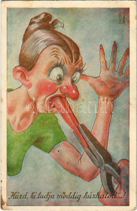 Húzd, ki tudja meddig húzhatod...! Anyós humor / Mother-in-law humour ... https://www.darabanth.com/de/506-Fernauktion/506.0/Ansichtskarten/Humor~180/Huzd-ki-tudja-meddig-huzhatod-Anyos-humor-Mother-in-law-humour-s-Kaszas-Jambor-EK~II3042870