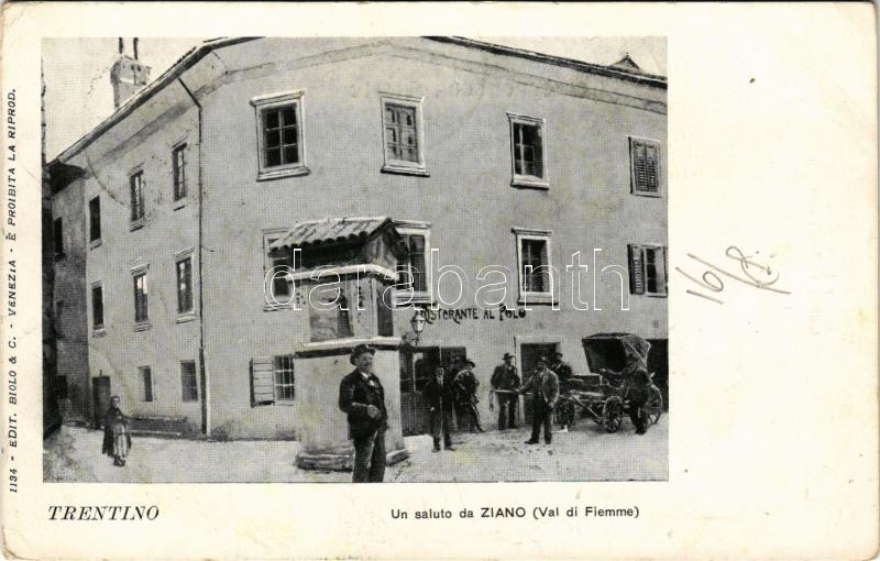 Beschreibung: 1918 Trentino (Südtirol), Val di Fiemme, un saluto da Ziano, Ristorante al Polo. Edit. Biolo & C. (Venezia) / restaurant (EK)