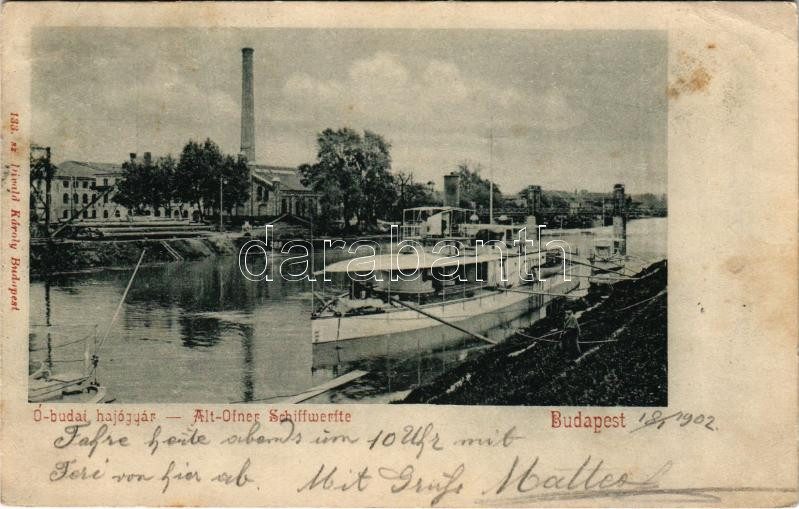 1902 Cs. és kir. Dunaflottilla monitorja Budapesten az óbudai hajógyárban. Divald Károly 133. sz. / K.u.K. Kriegsmarine Donauflottille / Austro-Hungarian Danube Fleet river guard ship in the shipyard of Óbuda (r)