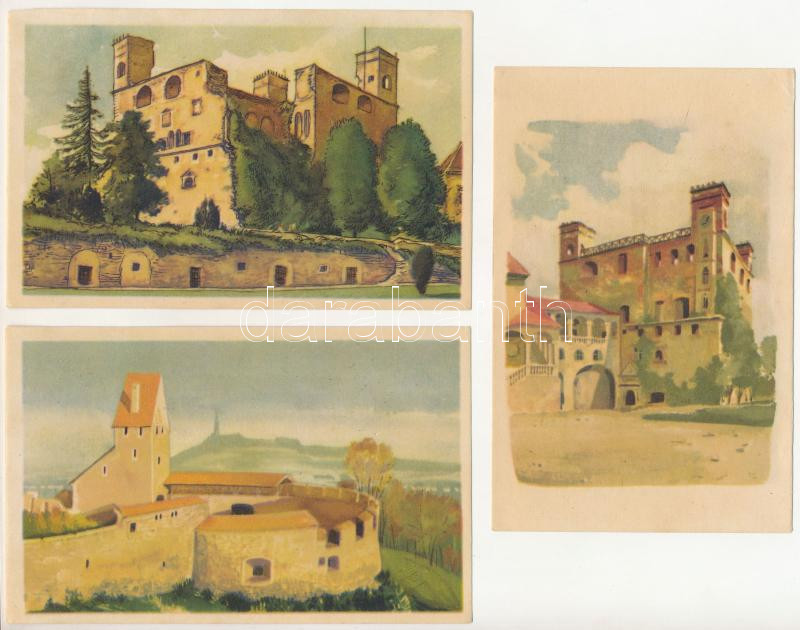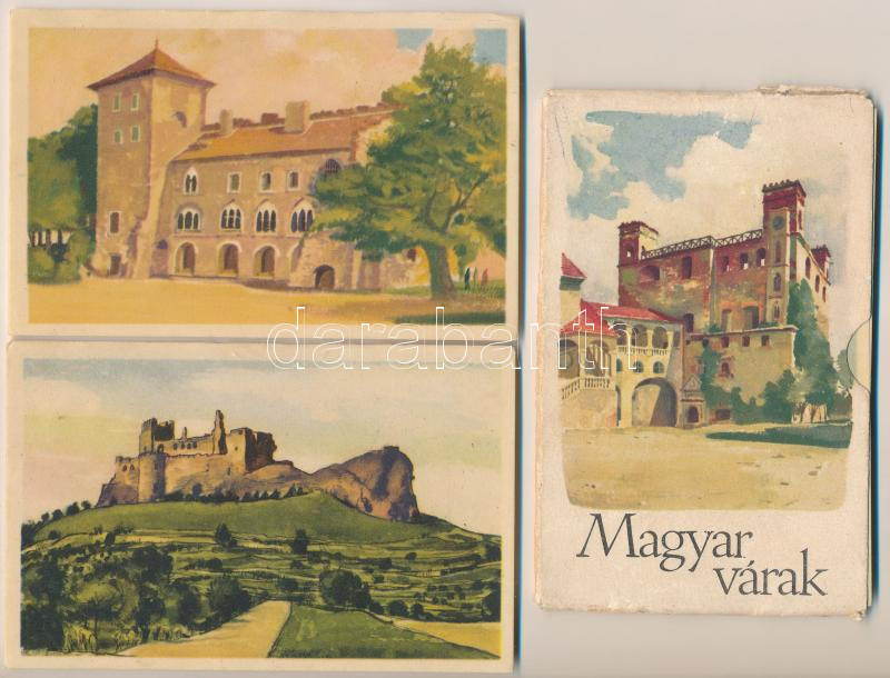 MAGYAR VÁRAK - 26 db MODERN művészlap papír tokban (Képzőművészeti Alap) / 26 modern Hungarian castles postcards in paper case s: Szücs Pál (szakadás / tear)