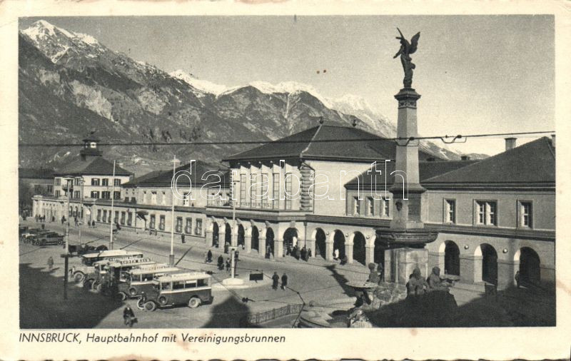 Innsbruck main railway station with autobus station (Rb) https://www.darabanth.com/de/506-Fernauktion/506.0/Ansichtskarten/Osterreich~121/Innsbruck-main-railway-station-with-autobus-station-Rb~II329020