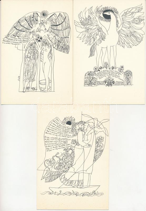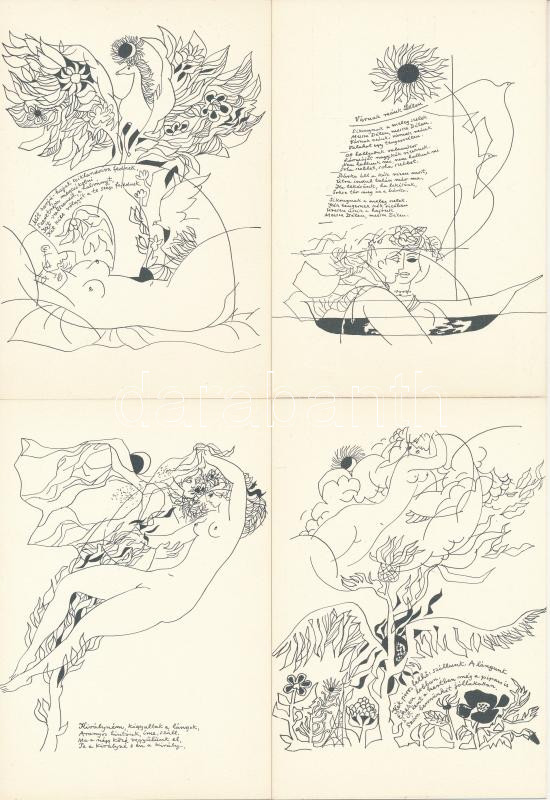 7 db MODERN postatiszta Ady Endre grafikai vers illusztrációs képeslap. Képzőművészeti Alap Kiadóvállalata / 7 unused graphic motive cards, poem illustrations of Hungarian poet Endre Ady s: Reich Károly