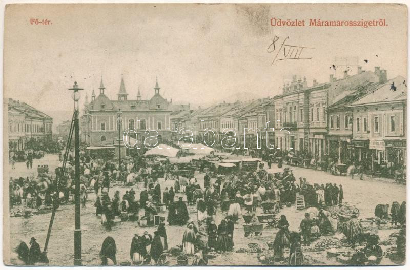 1906 Máramarossziget, Sighetu Marmatiei; Fő tér, piac, Az Angol Bolt, ... https://www.darabanth.com/de/506-Fernauktion/506.0/Ansichtskarten/Siebenburgen~112/1906-Maramarossziget-Sighetu-Marmatiei-Fo-ter-piac-Az-Angol-Bolt-uzletek-Wizner-es-David~II3427292