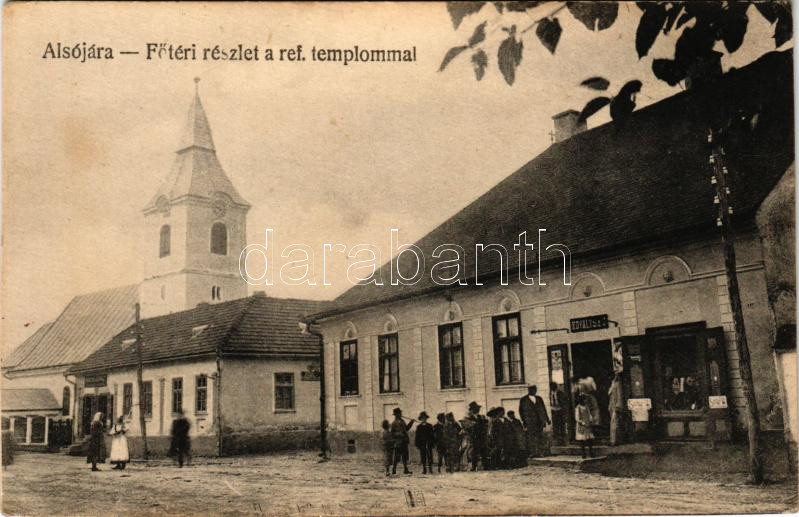 1912 Alsójára, Iara de Jos, Iara; Fő téri részlet a református templom... https://www.darabanth.com/de/506-Fernauktion/506.0/Ansichtskarten/Siebenburgen~112/1912-Alsojara-Iara-de-Jos-Iara-Fo-teri-reszlet-a-reformatus-templommal-Kovaltsik-uzlete-~II3429899