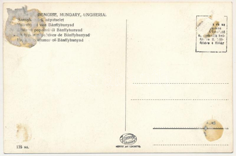 Beschreibung: Bánffyhunyad, Huedin; erdélyi folklór, népviselet / Costumi popolari / Transylvanian folklore (ragasztónyom/ glue marks)