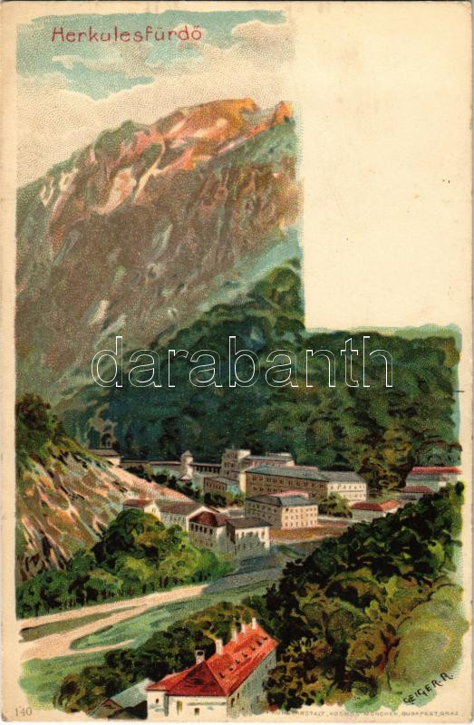 Beschreibung: Herkulesfürdő, Baile Herculane; Kunstanstalt Kosmos 140. litho s: Geiger R.